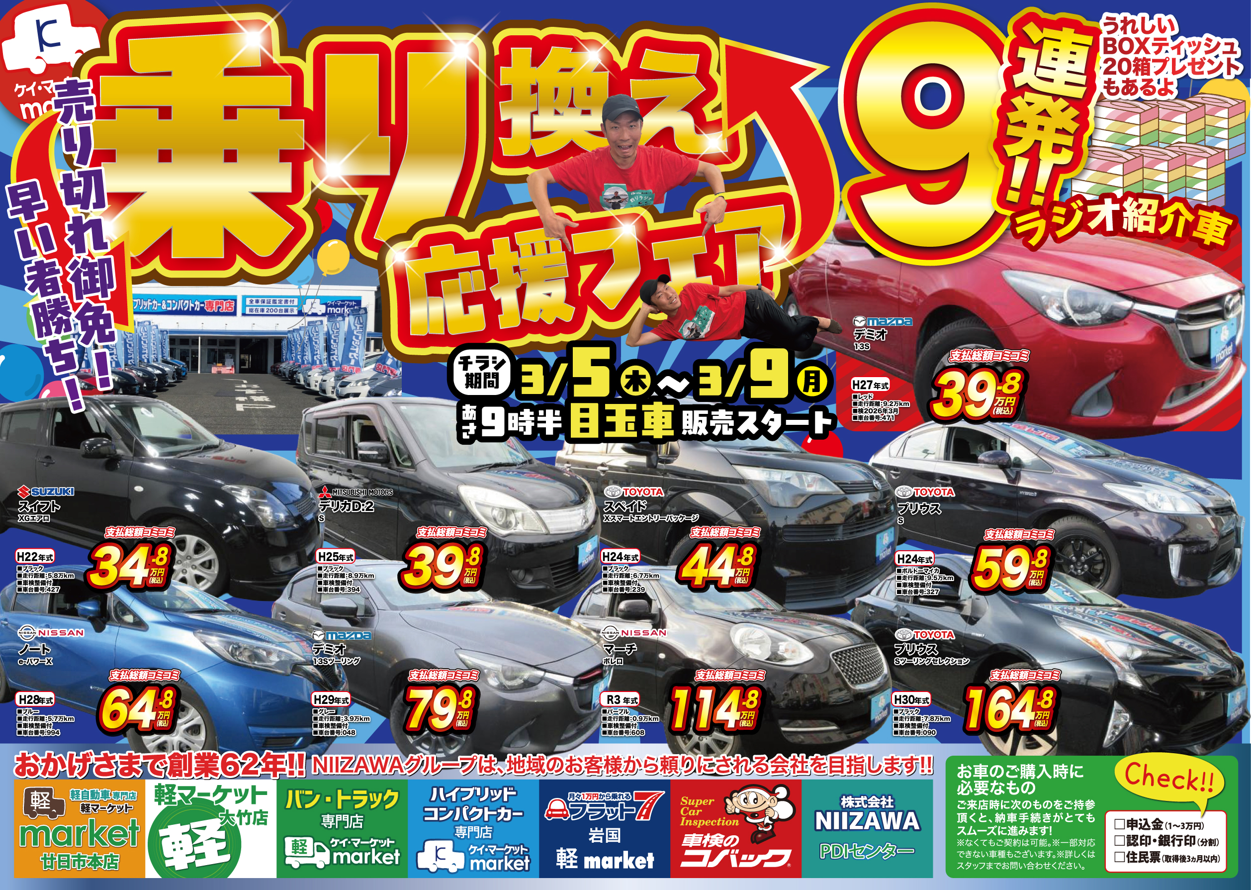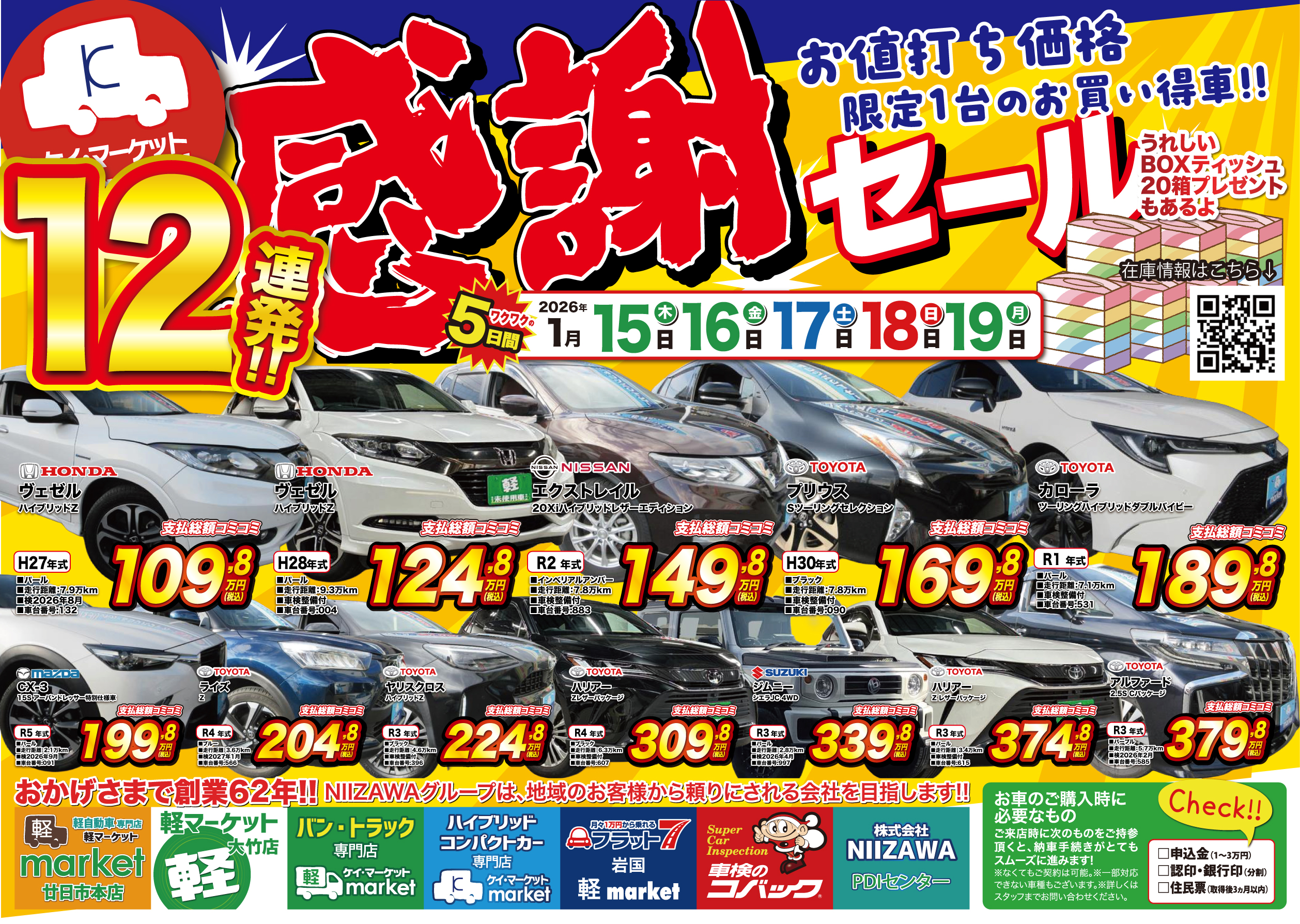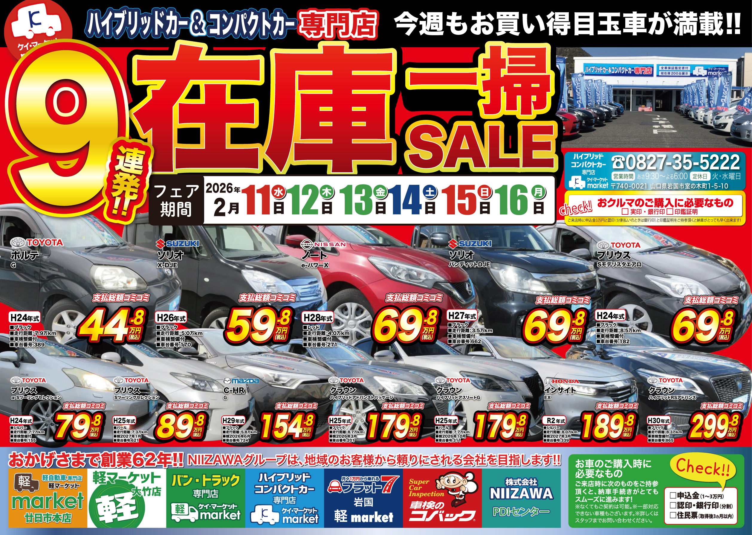 当店は、岩国・大竹・廿日市エリアでもトップクラスの在庫を常時取り揃えています!